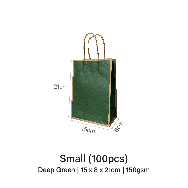 15 x 8 x 21cm Deep Green with Brown Border Paper Bag (10pcs)