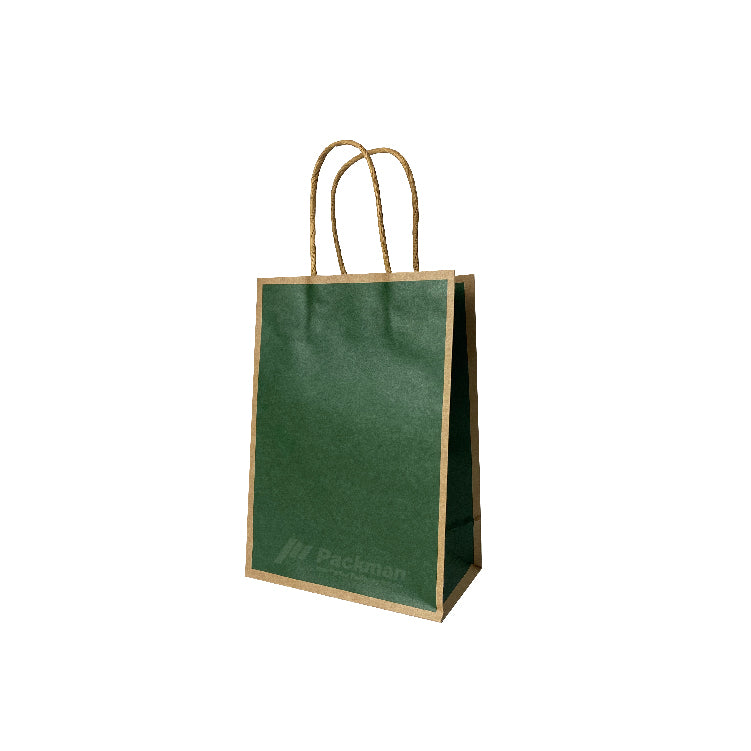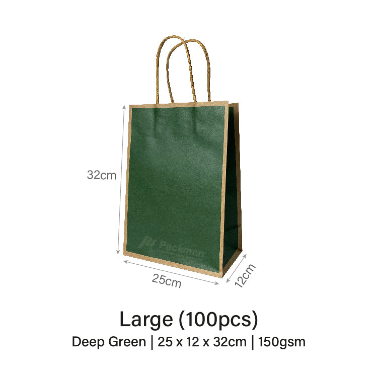 25 x 12 x 32cm Deep Green with Brown Border Paper Bag (10pcs)