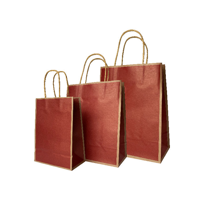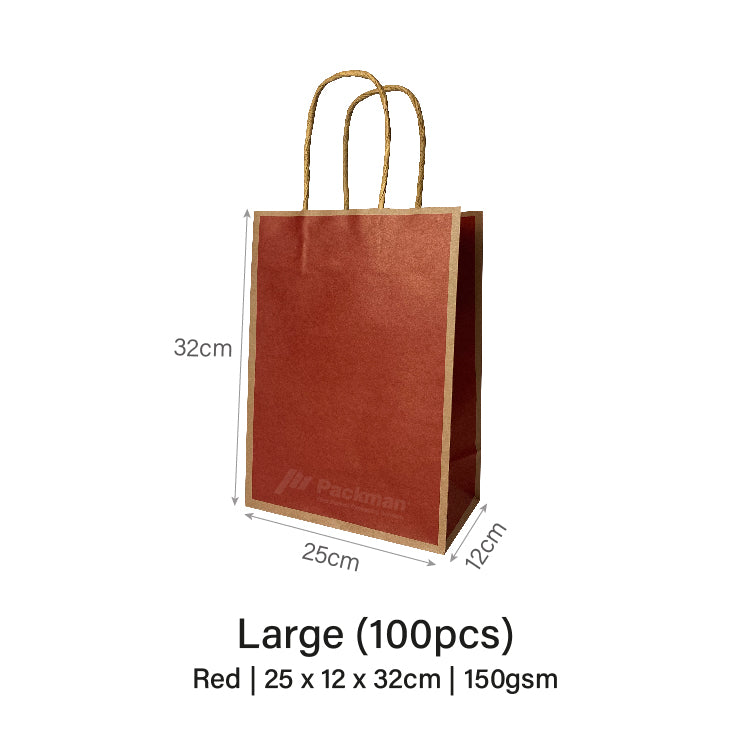 25 x 12 x 32cm Red with Brown Border Paper Bag (10pcs)