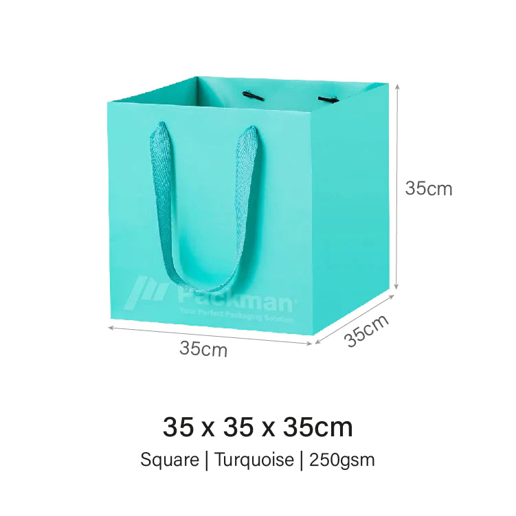 35 x 35 x 35cm Square Turquoise Paper Bag (10pcs)